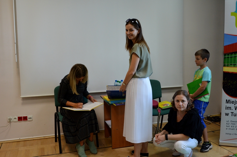 Kolejnym gościem, który w miniom tygodniu przybył do turkowskiej biblioteki, by porozmawiać o swoich książkach, była Eliza Piotrowska. Pisarka i tłumaczka opowiadała najmłodszym czytelnikom o pewnej sympatycznej myszce, którą uwielbiają dzieci na całym świecie. Wszystkie maluchy z ogromnym zainteresowaniem wysłuchały opowieści o Tupciu Chrupciu i z dużym zaangażowaniem odpowiadały na pytania autorki.